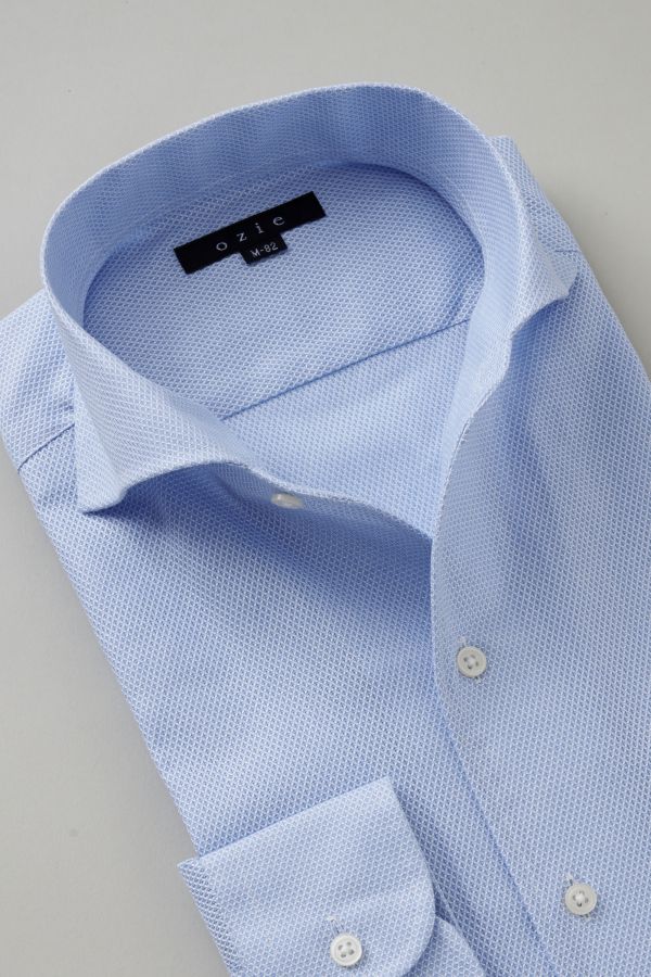 ※弊社「あす楽」詳細を必ずご確認ください⇒ワイシャツ専門店ozie メンズ:ドレスシャツ/ワイシャツ/Yシャツ/カジュアルシャツ/クールビズ/cool biz/通販 おすすめ用途: 誕生日 お祝い 贈物 贈り物 ギフト バレンタインデー 卒業祝い 入社祝い 母の日 父の日 敬老の日 クリスマス プレゼント 就活用 就職活動 利用時期: 春物 夏物 秋物 冬物 サイズ展開:| Sサイズ-37-80 | Sサイズ-38-81 | Mサイズ-39-82 | Mサイズ-40-83 | Lサイズ-41-84 | Lサイズ-42-85 | LLサイズ-43-86 | 3Lサイズ-45-86 | 4Lサイズ-47-86 | トールサイズ-Mサイズ-39-88 | トールサイズ-Lサイズ-41-90 | トールサイズ-LLサイズ-43-90 |通気性・清涼感抜群!プレミアムコットン使用の希少性の高い春夏用生地=からみ織り使い衿開き美しいノーネクタイ専用シャツサックスブルー 青 【 タイトフィット 】【 綿100%・80番手双糸 】 【 プレミアムコットン 】【 からみ織り 】 【 イタリアンカラー/第一ボタンあり 】 【 ワイドカラー 】【 長袖 】 ●新疆綿とは? 繊維の長さが通常より長い綿(詳しくは繊維の長さが28.6mm以上の原綿)を超長綿(プレミアムコットン)といいます。