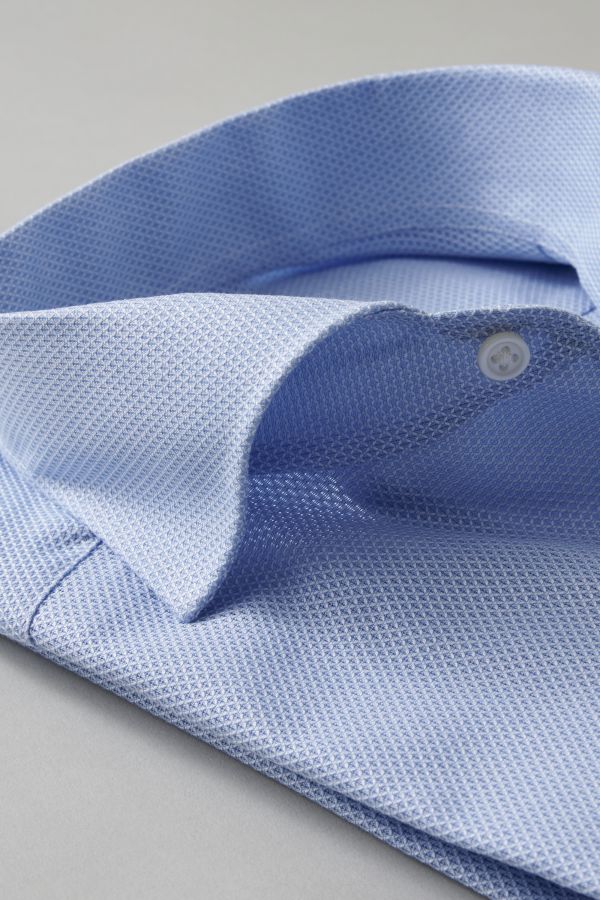 イタリアンカラーと広角なワイドカラーを掛け合わせたスタイリッシュなノーネクタイ専用の衿型です。