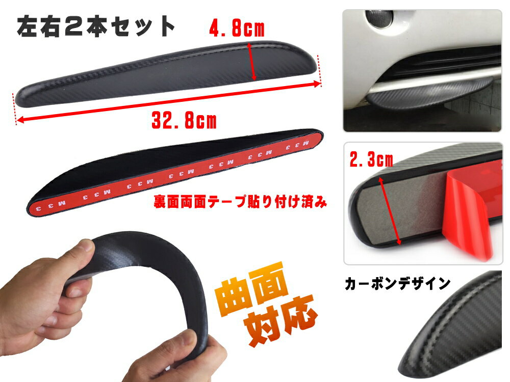 バンパープロテクター カーボン(L) 【商品一覧】 33cm 汎用アクセントプロテクター ブラック コーナーやスポイラーをマルチガード ガリ傷防止や傷隠しに 両面テープ付属の簡単取り付け エアロ 艶消し カナード 星光産業のものではありません