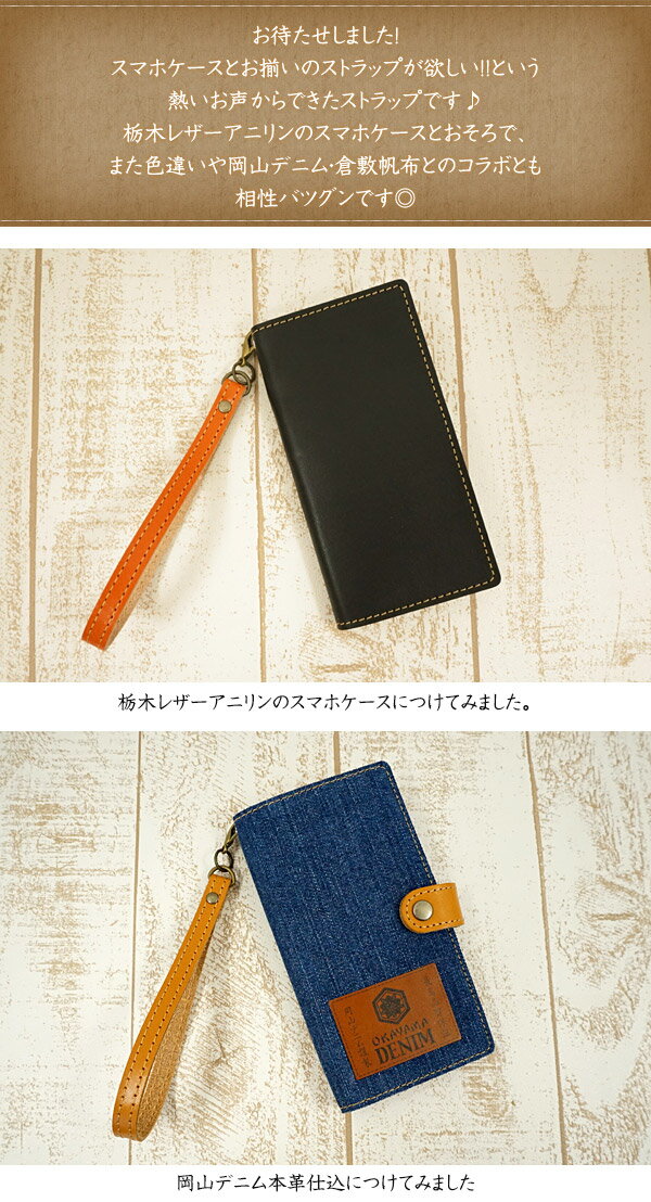 商品説明 ・ストラップ:約13.5cm ・スマホケース手帳型本革栃木レザーアニリン仕上げと同じ素材です 素材:ストラップ部分/栃木レザーアニリン仕上げ ※商品のお色はお客様のPC環境によって多少色合い、見え方など違ってまいりま すのでご了承下さいますようお願いします。